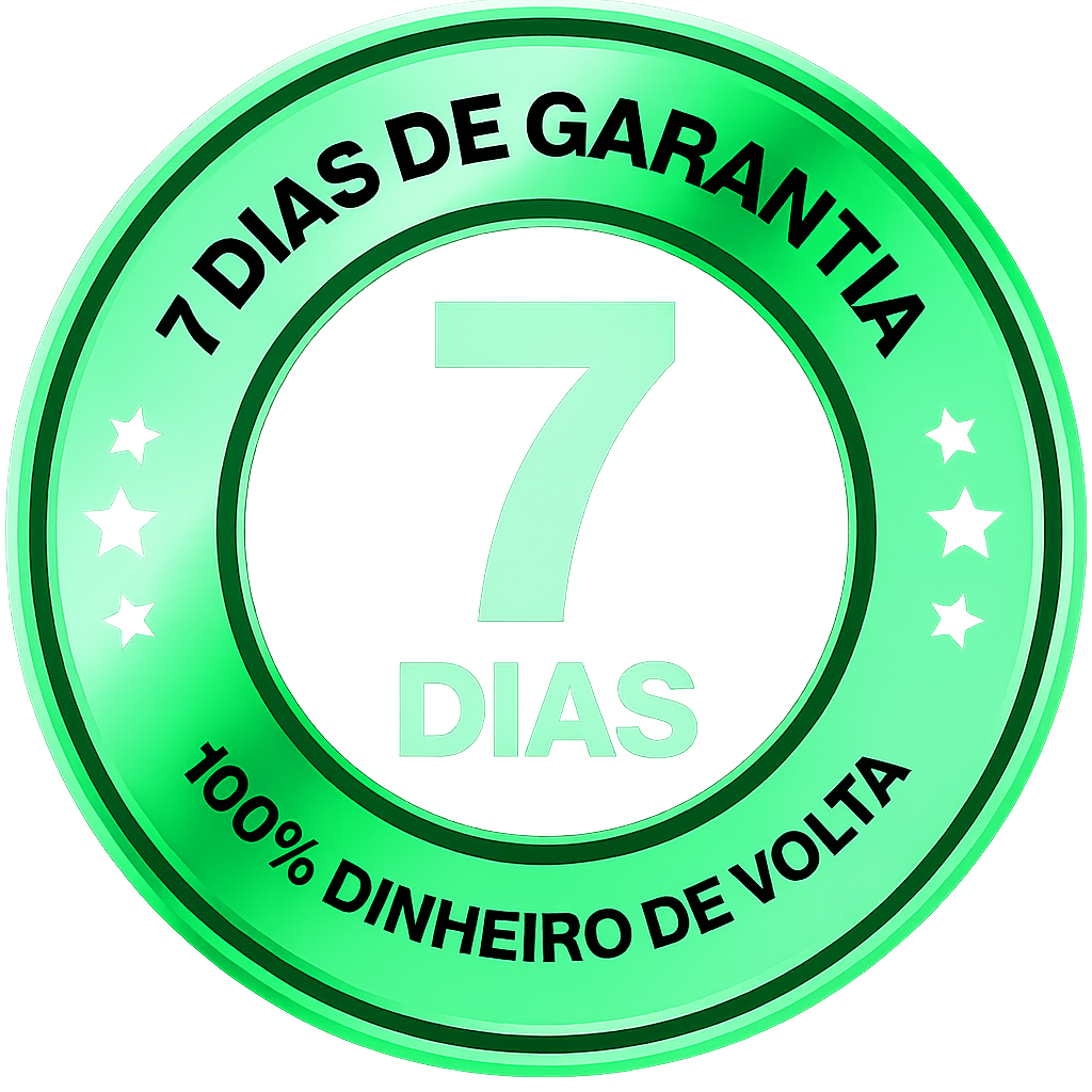 Garantia 7 dias — satisfeito ou seu dinheiro de volta.